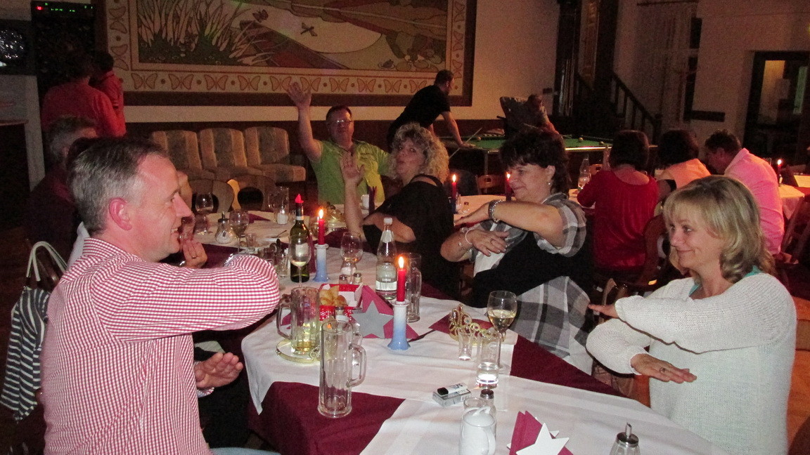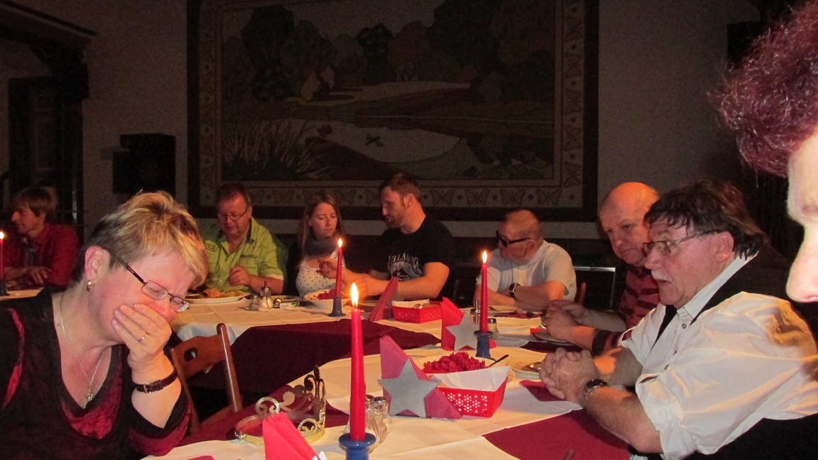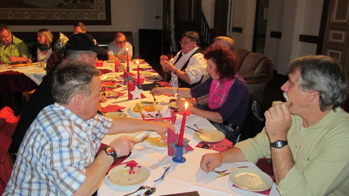 Auch in diesem Jahr gab es eine Weihnachtsfeier. Wir waren ein kleiner Haufen, aber es war lustig. Der Weihnachtsmann und sein Goldrauschengel überbrachten kleine Geschenke mit viel Witz und Charme. An den Klängen unseres Vereins-Chors müssen wir noch üben, aber ansonsten war es eine schöne nette Feier.