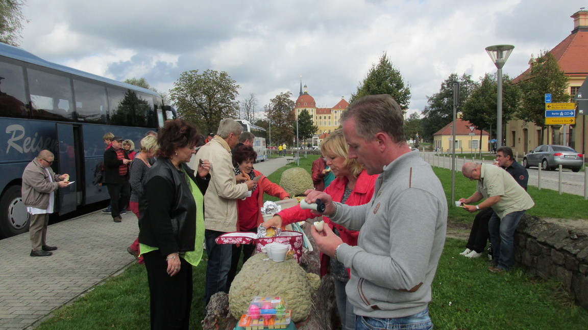 Der Wettergott war absolut auf unserer Seite, strahlender Sonnenschein begleitete uns auf unserer Enddeckungsreise in den Spreewald. Schloss Moritzburg war unsere erste Etappe, dort lernten wir viel über das ausgewogene Luxusleben unserer adligen Vorfahren (brrr denk grad an die Blutläppchen ) naja, aber interessant war es. Nach einem ausgiebigen *****Frühstück im Freien gings wieder weiter Richtung Unterkunft. Das Hotel " Goldener Stern" in Leibsch nahm uns Dank unserers angagierten Dolmetschers :-) gastfreundlich auf, Klammotten in die Ecke und es ging ab in den Gesangskreis "Goldene Stimmen". Es ist unglaublich, wie,viel RUSSISCH, wir doch noch aus unseren grauen Zellen rausgebuddelt haben!!